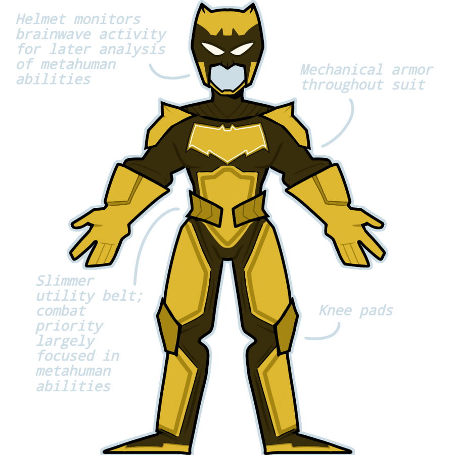 BASELINE: Stable, but medicated in accordance with Doctor Thompkins observations. If medication routine lapses, can show symptoms of major depression that impact reflexes and capability on patrol.PRIMARY MOTIVATORS: Sense of compassion, perceived guilt over past actions and associations, loyalty to family.NOTES: Highly sensitive and deeply empathetic to others, often to the point of self-destruction.