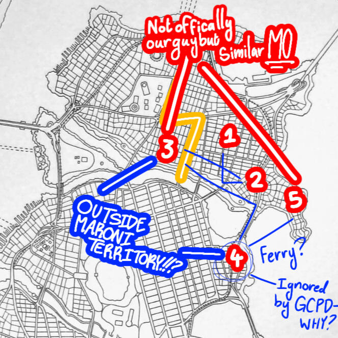 Citywide Halloween activities produced elevated civilian foot traffic; oppurtunistic crimes throughout The Narrows and the West End. Three separate mugging attempts disrupted, all independent actors detained for GCPD retrieval.False Fase Gang intercepted robbing a jewelry store. Two armed combatants, four unarmed. Total combat time 5:48-- reflexes notably decreased.Multiple firework detonations across the city flagged as potential explosive signatures, disregarded as false alarms (note to update scans to differentiate).NOTES: